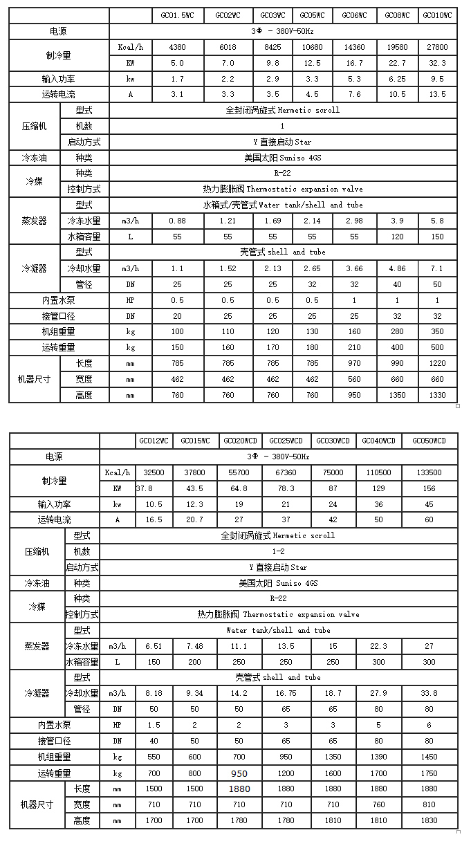 水冷式雷火官网-雷火(中国)一站式服务平台技术参数表